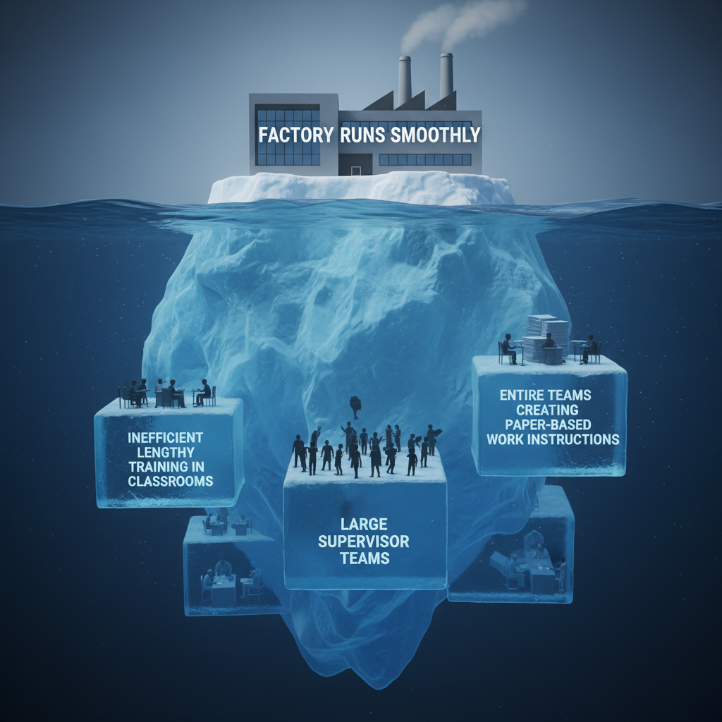 Without traceability in how work instructions are created and how processes are executed, inefficiencies stay hidden, just like the submerged part of an iceberg. This is not a harmless blind spot; it is a structural risk that blocks learning, resilience, and long-term competitiveness.