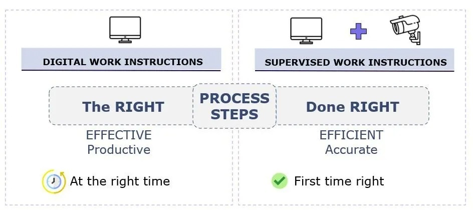 Of the billions of products manufactured every day, few could be made without any human interaction. Digital work instructions are a medium to guide operators through each step of the process providing in context information like pictures, video’s.. However it has its limit in terms of execution reliability, safety and accuracy. Despite having good intentions, making mistakes is inherently part of what makes us human. Some mistakes – although not intended – can have a serious impact on product quality. Hence, humans deserve a second eye, especially when a manufacturing process is critical or prone to errors.