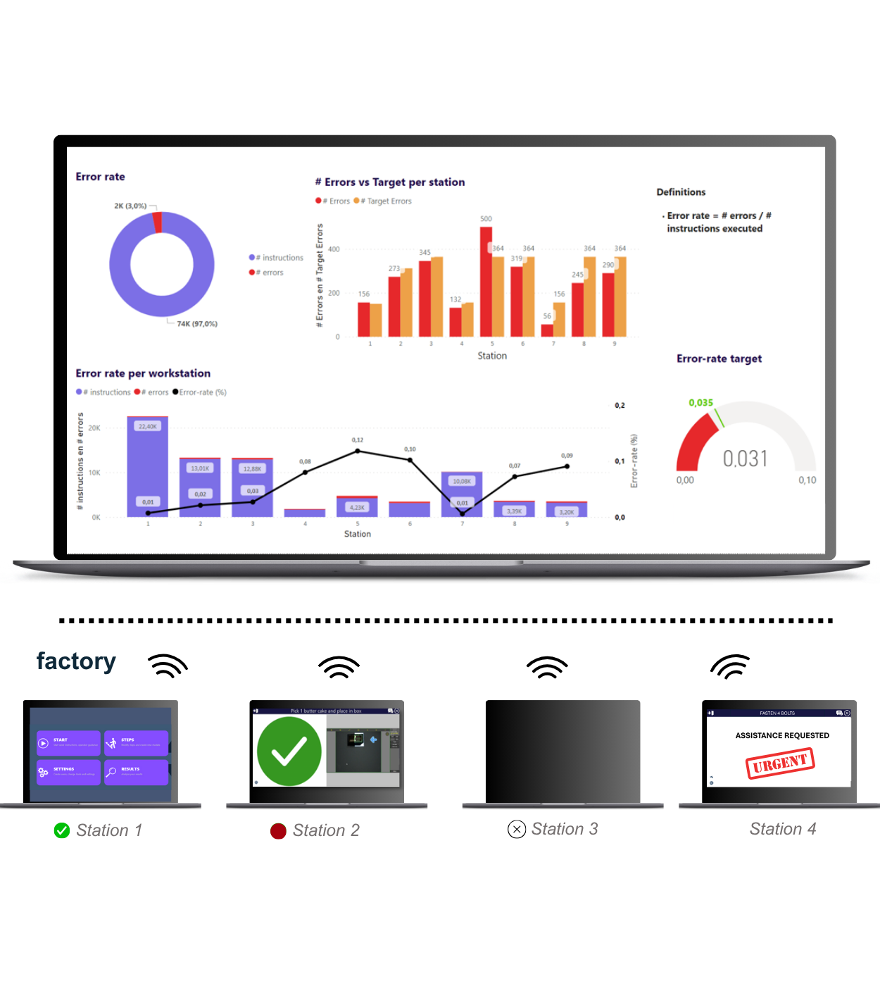 Many manufacturers use operator guidance systems not only to support workers but also to gain unprecedented transparency on the shop floor. Because every action is digitally recorded, managers gain real-time visibility into operations. Seeing exactly what’s working well and where improvements can be made. This creates a live feedback loop that highlights inefficiencies, uncovers bottlenecks, and provides data-driven insights into throughput times, shift performance, and operator competence levels. Rather than relying on assumptions or delayed reports, you can make informed decisions based on accurate, up-to-the-minute data.