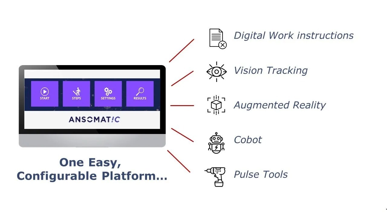 Ansomat Operator Guidance System serves as the umbrella interface, providing AR-based work instructions to the operator, tracking handlings and integrates smoothly with cobots of any provider.