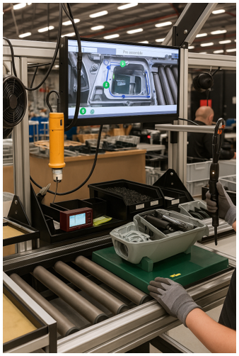 Thorn now has a broad set of digital tools to clearly convey its instructions to the operator via screens, including video, 3D animations and audio. By making use of a voice-guided interface, operators do not always have to combine looking at the screen with critical handlings. This makes it easier for them to focus on the job and to smoothly complete complicated assembly steps without making mistakes. Ansomat software also alerts operators to look at the screen at the right time when a specific operation is needed.